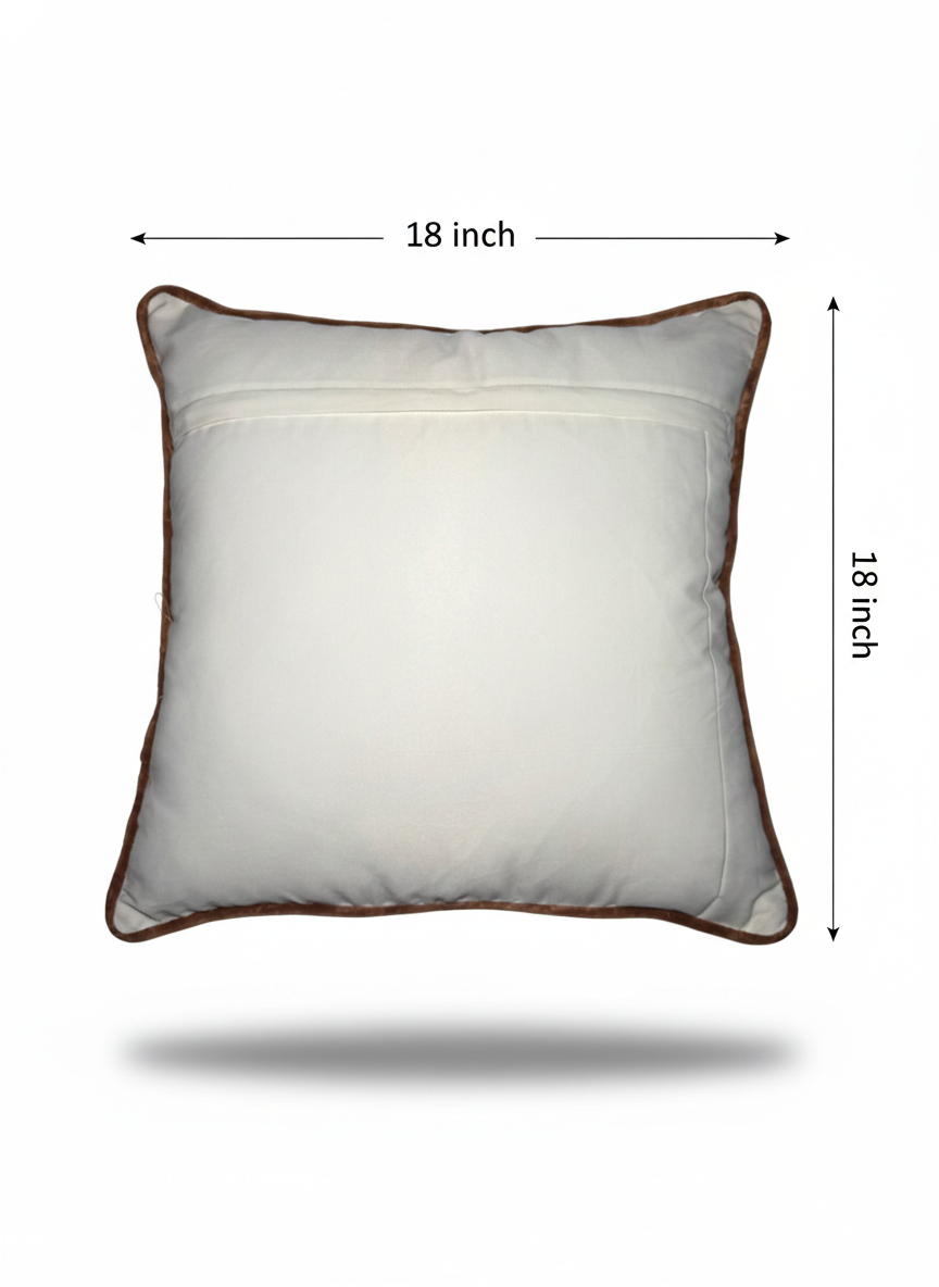 Made using cotton flex and poly duck backing, this cushion cover features Aari and manual embroidery, adding vibrant character and durability to your décor.